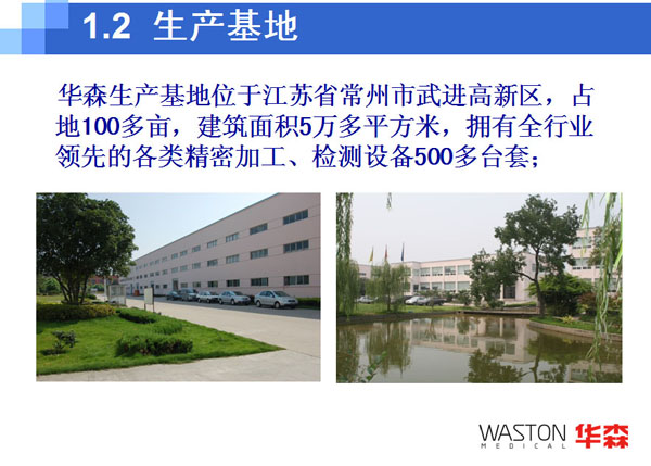 華森醫(yī)療集團(tuán)是常州聯(lián)合工具集團(tuán)控股的,由常州華森醫(yī)療器械有限公司、常州華森生物科技有限公司、常州華森醫(yī)療科技有限公司、華森三家聯(lián)動(dòng)科技創(chuàng)新中心、上海民衛(wèi)醫(yī)療器械有限公司等企業(yè)組成的集研發(fā)、制造、銷售、服務(wù)于一體的專業(yè)化醫(yī)療、健康產(chǎn)業(yè)集團(tuán)。 公司總部坐落于風(fēng)景秀麗的江南制造業(yè)基地——常州市武進(jìn)高新區(qū),西鄰常州飛機(jī)場,北靠滬寧高速公路,南依沿江高速公路,交通十分便利。 集團(tuán)核心成員——常州華森醫(yī)療器械有限公司是由常州聯(lián)合工具集團(tuán)和日本オーテー株式會(huì)社在2001年聯(lián)合投資5000萬人民幣成立的,專注于骨科、胸外科植入物等產(chǎn)品的開發(fā)、制造、營銷、服務(wù)的醫(yī)療器械專業(yè)廠家。自2001年成立以來已經(jīng)成為行業(yè)領(lǐng)先的和國內(nèi)最具活力的公司之一。 華森醫(yī)療公司采用事業(yè)部制管理結(jié)構(gòu),現(xiàn)公司下設(shè)為骨科事業(yè)部、吻合器事業(yè)部、手術(shù)工具事業(yè)部及胸外科產(chǎn)品事業(yè)部等四大事業(yè)部。主要生產(chǎn)三類6846骨科植入物及人工 、二類6801基礎(chǔ)外科手術(shù)器械、6825醫(yī)用高頻儀器設(shè)備、6808腹部外科手術(shù)器械及吻(縫)合器,專利爪型純鈦肋骨接骨板等產(chǎn)品。 公司三大生產(chǎn)基地占地面積100多畝,建筑面積35000多平方米,十萬級凈化車間2000多平方米。中高級以上職稱的研發(fā)、生產(chǎn)、質(zhì)控、管理人員占員工總?cè)藬?shù)的30%以上。公司設(shè)備精良,擁有包括德國DMG、CHIRON、美國HASS五軸加工中心、日本STAR縱切機(jī)床、SODICK慢走絲線切割在內(nèi)的著名品牌加工中心及其它高精密度機(jī)械加工設(shè)備一百多臺套,檢測設(shè)備齊全。公司與北京協(xié)和醫(yī)院,北京軍區(qū)總醫(yī)院,南京醫(yī)科大學(xué)、蘇州大學(xué)等著名醫(yī)院、學(xué)院進(jìn)行學(xué)術(shù)、技術(shù)聯(lián)盟,并依托兩大母公司的雄厚實(shí)力形成了強(qiáng)大的研發(fā)力量和生產(chǎn)能力。 華森公司為ISO13485:2003(YY/T0287-2003)國際質(zhì)量體系認(rèn)證企業(yè),所有產(chǎn)品全面通過歐盟CE認(rèn)證,其中華森吻合器已經(jīng)率先獲得了美國FDA510(K)認(rèn)證。經(jīng)過幾年的努力,華森WASTON品牌產(chǎn)品不僅出口到南美、中東、東南亞、東歐、北非等發(fā)展中國家,而且已經(jīng)開始進(jìn)入美國、法國、瑞士、德國、意大利、英國等歐美傳統(tǒng)發(fā)達(dá)國家。特別是與美國、歐洲的一些行業(yè)著名企業(yè)建立了合作聯(lián)盟關(guān)系,為華森產(chǎn)品達(dá)到或超過國際同類產(chǎn)品打下了堅(jiān)實(shí)的基礎(chǔ)。 我們歡迎國內(nèi)外新老客商、朋友前來華森考察洽談、技術(shù)交流、合作合資,與華森公司共創(chuàng)美好明天。