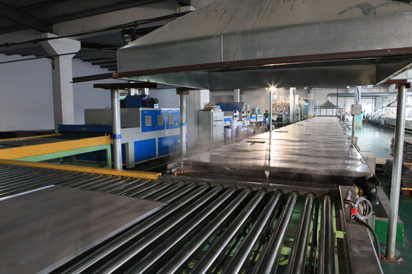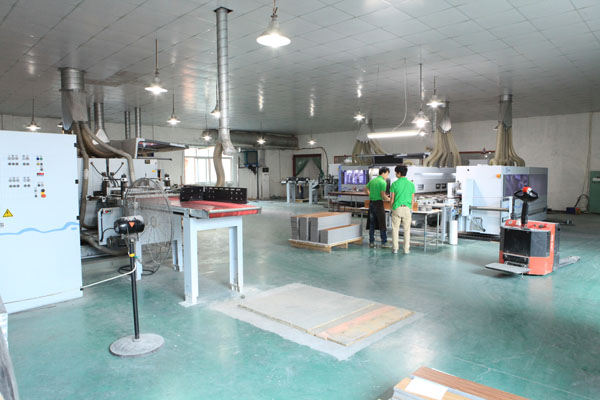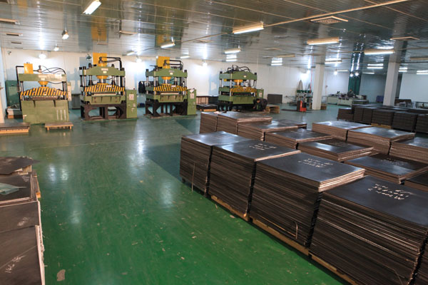 公司目前有4條專業(yè)PVC地板線,主要設備包括;全自動投料設備2套、,四輥密煉、開練機4套,淋膜回火線5條,各種規(guī)格的油壓機39組、進口豪邁開槽線4條,智能化沖床12臺,每天可生產(chǎn)20000㎡左右的各種規(guī)格地板,每月出口近300個集裝箱貨柜至世界各地。