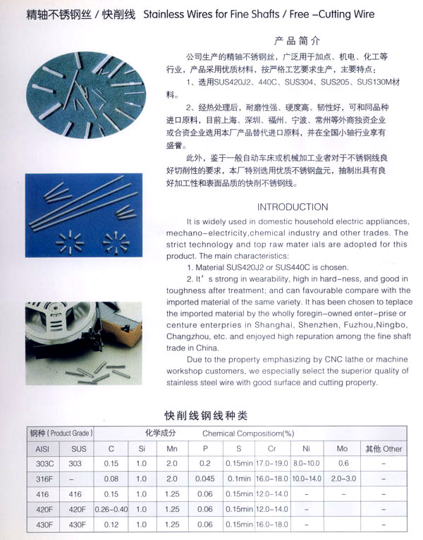 公司專業(yè)生產(chǎn)各種不銹鋼線材,年生產(chǎn)能力25000噸,產(chǎn)品已廣泛用于醫(yī)療、交通化工、彈簧、陶瓷模具、鋼球、五金件、標(biāo)準(zhǔn)件、精密軸制造等各領(lǐng)域。