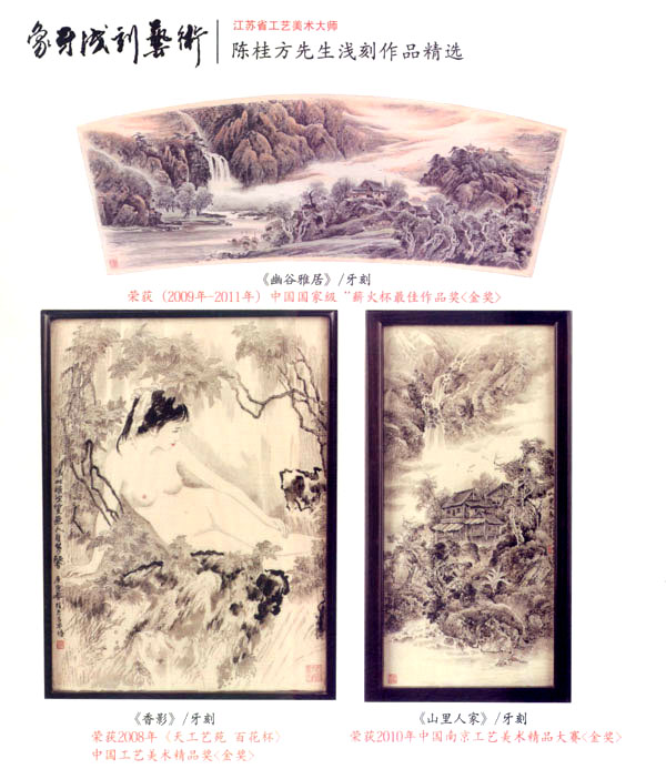 陳桂方,江蘇常州武進人,中國著名雕刻藝術家,江蘇省工藝美術大師、研究員級、高級工藝美術師,江蘇省非物質(zhì)文化遺產(chǎn)《象牙淺刻》代表性傳承人。畢業(yè)于中國書畫函授大學,深造于清華大學、南大美術系,現(xiàn)任中國工藝美術協(xié)會會員,江蘇省工藝美術學會理事,常州市工藝美術家協(xié)會副秘書長,常州市工藝美術行業(yè)協(xié)會常務理事,武進工藝美術協(xié)會副主席。陳桂方大師淺刻作品的藝術特點:山水氣韻生動,氣勢磅礴,場面壯觀,刀法細膩:人物仕女生動可人,栩栩如生,充分表達體現(xiàn)了中國象牙工藝獨具的內(nèi)在文化底蘊和現(xiàn)代社會的審美觀念及獨特的淺刻藝術表現(xiàn)技藝。對每件藝術作品創(chuàng)作都精益求精,強調(diào)藝術創(chuàng)作的思想性、意境及內(nèi)涵。注重章法構思,掌握牙刻藝術的特性表現(xiàn),作品具有鮮明生動的時代氣息,獨具所創(chuàng)工筆與寫意相結合的牙刻藝術表現(xiàn)手法和表現(xiàn)形式,出眾、飄逸、多變的刀法技藝,粗獷處見細微、方寸間見大觀的創(chuàng)作理念深受專家權威的肯定和業(yè)內(nèi)人士的一致好評。陳桂方大師至企頑事象牙淺刻藝術創(chuàng)作近四十余載,完善了自己的創(chuàng)作體系,成就了自己獨特的藝術風格。作品數(shù)年來連續(xù)二十多次榮獲國家最高藝術精品大獎《金獎》,象牙淺刻作品《李逵探母》已被國家工藝美術館收藏,并頒發(fā)了國家收藏證書,在全國數(shù)十年間尚屬首次。當前,陳桂方牙刻藝術作品已深受廣大海內(nèi)外業(yè)內(nèi)人士、收藏家們的鐘愛、青睞、熱藏,并被譽為當代最杰出最具潛質(zhì)的實力派藝術大師。