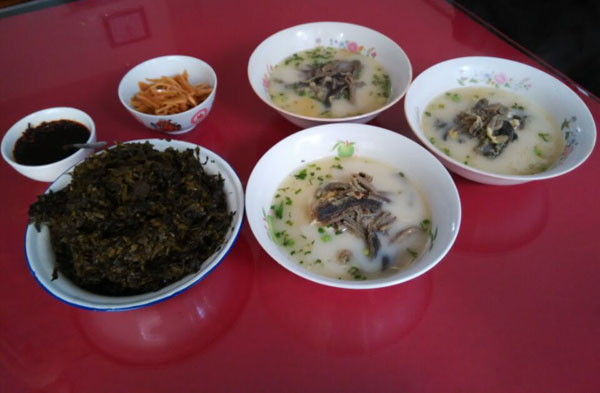 歡迎來孟河老街的八斤面館吃孟河鱔絲面! 這孟河鱔絲面據(jù)說是康熙年間傳下來的,算起來已有三百多年的歷史了,要比常州小籠饅頭、大麻糕一百多年歷史悠久得多。在孟河一帶,做孟河鱔絲面的面館有許多家,就像常州做小籠饅頭、大麻糕的店家一樣的多。 “八斤面館”的孟河鱔絲面是有傳承的,是孟河兩家比較正宗的孟河鱔絲面館之一。孟河鱔絲面制作技藝曾列入新北區(qū)非物質(zhì)文化遺產(chǎn)調(diào)查,調(diào)查時“八斤面館”的老板巢八斤也提供了有關資料。 這家小面館取名為“八斤面館”,是因為老板小名就叫八斤。走進這片小小的面館,只有兩張八仙桌。只有臺子上的玻璃臺刻還有點七十年代的特征,其它地方還都是五、六十年代鄉(xiāng)下家里頭的風格。 老板巢八斤祖上三輩都是廚師,現(xiàn)在兒子也在上海做廚師。老板娘原來是上海知青,上山下鄉(xiāng)時投親靠友來到孟河,后來在孟河與巢八斤結(jié)婚,成家立業(yè)。與在支青大返城時放棄回大上海的機會,與老公開了這個“八斤面館”,用老板娘的話說是"做做白相相的",所以守著這片小店,只想把鱔絲面做好。也不想做大,也不想到常州到上海去開大一點的面館。 這孟河鱔絲面是用一斤有十幾條的“筆梗黃鱔”,先用開水把黃鱔燙熟,然后用竹刀批下二條黃鱔肉,除去骨頭肚腸,切成段后入油鍋里炸酥,再用白湯烹制成為面澆頭。而面湯是用鱔魚骨頭、豬骨等用大鍋猛火煮上三、四個鐘頭,成為一鍋濃濃的白湯,再進行調(diào)味。面條也是用細細的銀絲面,大碗寬湯,鮮香味濃,沒有一丁點鱔魚的土腥氣,再加上白胡椒粉,吃到嘴里全身舒坦。
