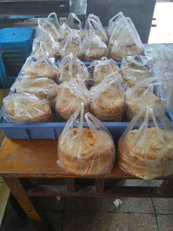 常州人夏亞寶的大麻糕技術(shù)是上世紀80年代更著新橋麻糕店的師傅周金生學(xué)的,1999年開店至今,在附近一帶做得小有名氣,向?qū)W校供應(yīng)麻糕,整整6年。 “做大麻糕太辛苦,半夜爬起來準備熱爐子、和面、做餡,年輕人吃不了這苦,15年我都沒請人,和老婆一起打過來的!毕膩唽氈钢直凵系臓C傷的痕跡說,能堅持烤桶制作大麻糕的真心不多了。夏亞寶的烤桶是自制的,爐心常州買不到,他托人從無錫買來,15年前85元一個,前年漲到150元!翱就暗臓t心其實就是以前船上人家用的行爐”,去底后鑿個洞,然后外面加上隔熱材料,最后貼上鐵片”。 15年,這已經(jīng)是第三只貼桶了。