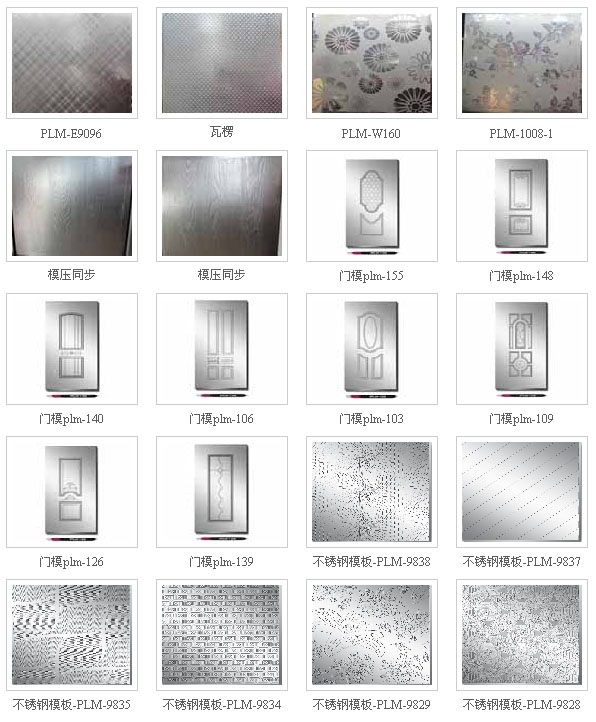我公司是一家專業(yè)研發(fā)、制造不銹鋼模板、電梯裝潢板等產(chǎn)品的廠家,產(chǎn)品主要適用于壓制三聚氰胺貼板、強(qiáng)化復(fù)合地板、膠合板、PVC板等。 公司主要產(chǎn)品有鏡面、亞光、麻面、浮雕、水晶面、木紋、布紋、皮紋、石紋、瓦楞紋等常規(guī)類不銹鋼模板和裝飾板,以及V型槽、R型槽、波浪紋、手抓紋、仿真對(duì)紋等高檔復(fù)合地板專用模板。本公司堅(jiān)持以最優(yōu)質(zhì)的選材,最精湛的工藝,最先進(jìn)的技術(shù)用心打造每一款產(chǎn)品,使之藝術(shù)感與實(shí)用性并存,充滿著生機(jī)與活力,為客戶提供更多更理想的選擇。公司最新推出模壓門(mén)專用模板,可壓制各種三聚氰胺貼面門(mén)皮,為浙江永康門(mén)都以及全國(guó)各大門(mén)廠提供優(yōu)質(zhì)服務(wù)。