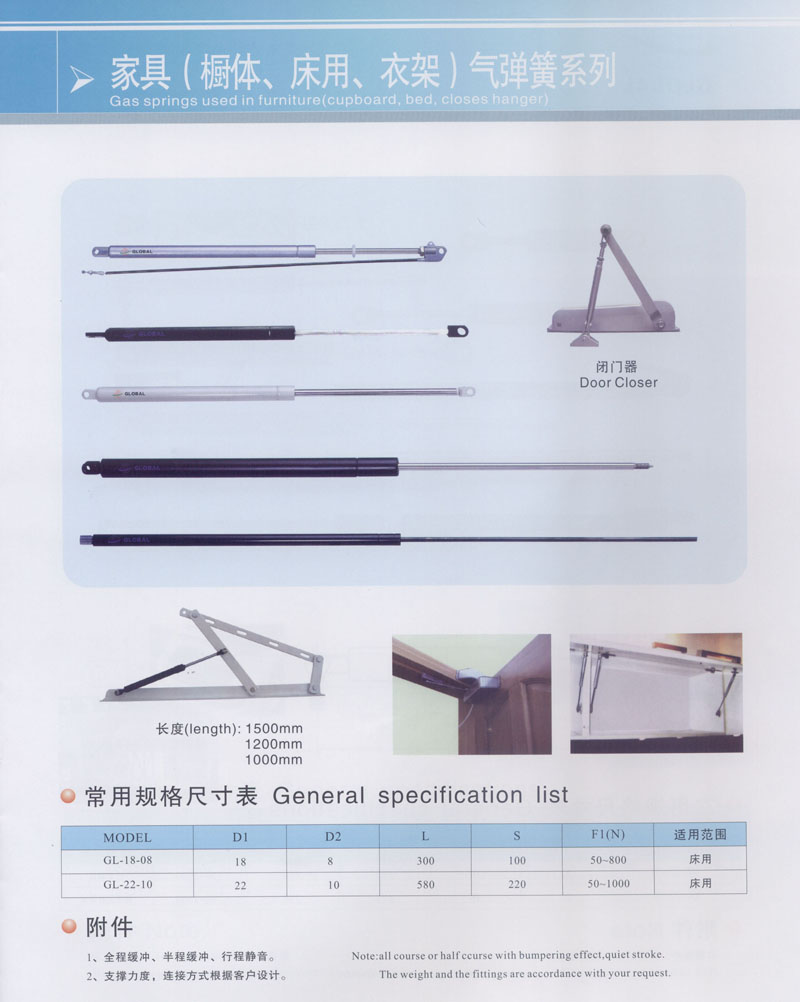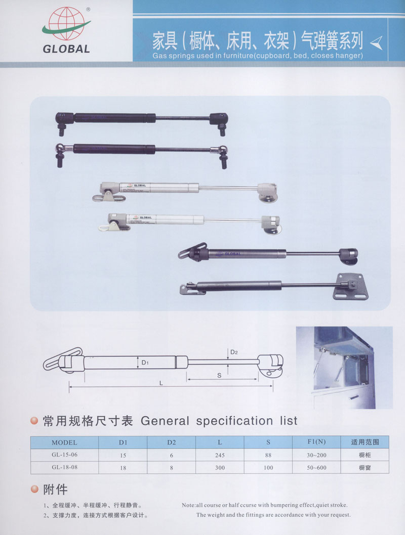 常州市全球氣彈簧有限公司坐落于高新開發(fā)區(qū)南區(qū),占地12800平方米,是專業(yè)生產(chǎn)用于家具,汽車,醫(yī)療設(shè)施以及工業(yè)等各類氣彈簧的廠家。公司擁有專業(yè)的技術(shù)人員和先進(jìn)的設(shè)備,產(chǎn)品大部分出口到國外,產(chǎn)品的質(zhì)量和性能得到內(nèi)外客戶的認(rèn)可和歡迎。 公司還配備了專門研究和開發(fā)新產(chǎn)品的技術(shù)人員以滿足不同客戶的需求。 您的關(guān)注和支持是我們不斷創(chuàng)新和發(fā)展的動力,更好的質(zhì)量和服務(wù)是我們的工作理念,我們將竭誠為您服務(wù)。