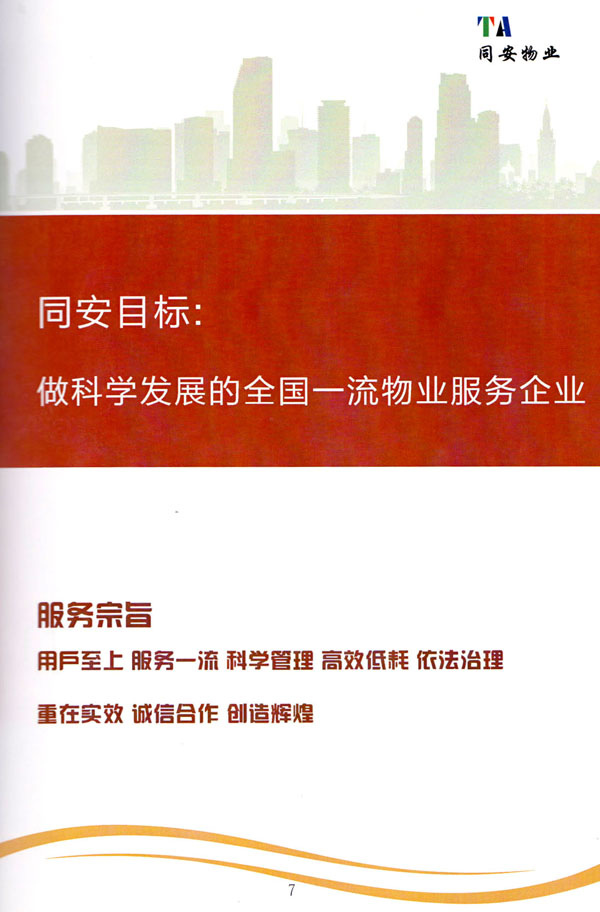 常州市同安物業(yè)管理有限公司注冊(cè)1999年,發(fā)展至今已有多年歷史,本公司坐落于美麗的龍城常州,秉承“融聚無(wú)限未來(lái)”的核心理念,融專業(yè)認(rèn)才,匯優(yōu)質(zhì)資源以”專心,細(xì)心,耐心”的服務(wù)態(tài)度,為客戶打造“安心,順心,稱心”的服務(wù)感受。 公司始終以“打造中國(guó)最值得信賴和最值得尊重的物業(yè)管理服務(wù)集成商”為愿景自我鞭策,不斷前行。同安物業(yè)以客戶滿意為終極目標(biāo),不斷加強(qiáng)”崗位資格認(rèn)證能力,人才招聘與職業(yè)化培訓(xùn)能力,產(chǎn)品策劃與管理設(shè)計(jì)能力,品質(zhì)監(jiān)督與管控能力,技術(shù)更新與運(yùn)營(yíng)優(yōu)化力“五大專業(yè)能力的培養(yǎng)和提升,實(shí)現(xiàn)“精品化管理,專業(yè)化服務(wù)”。 公司發(fā)展至今,員工總數(shù)近千余人,大專以上學(xué)歷200多人,中高級(jí)技術(shù)人員160人,維修人員140人,物業(yè)管理師80名,公司接管面積達(dá)3100000多平方米,設(shè)涉及住宅小區(qū),別墅,大型游樂(lè)場(chǎng),公園,醫(yī)院,廠區(qū),商業(yè)等。公司的工作管理逐步導(dǎo)入ISO9001質(zhì)量體系和ISO4001環(huán)境管理體系和GB/T28001職業(yè)健康安全管理體系,嚴(yán)格按照質(zhì)量體系的標(biāo)準(zhǔn)執(zhí)行。