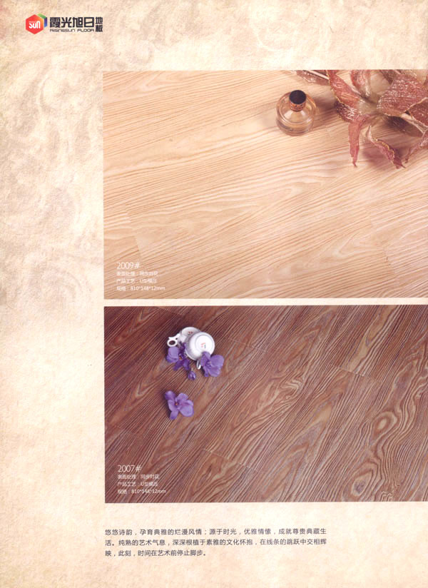 品牌保證,質(zhì)量放心 公司旗下“霞光.旭日”品牌地板系列由旭日皇家、旭日經(jīng)典、旭日戀家、至尊奢華、巧奪天工、水晶陶瓷等幾個系列構(gòu)成,配有專職質(zhì)量檢驗人員,嚴把產(chǎn)品質(zhì)量關(guān),不斷完善產(chǎn)品質(zhì)量體系、監(jiān)控管理體系。公司對客戶需求全面、科學、準確地把握,確保對客戶市場適時高效反應(yīng)。一流的設(shè)備、精心的選材、完美的工藝以及對產(chǎn)品品味不倦的追求,令奔公司產(chǎn)品獨樹一幟。