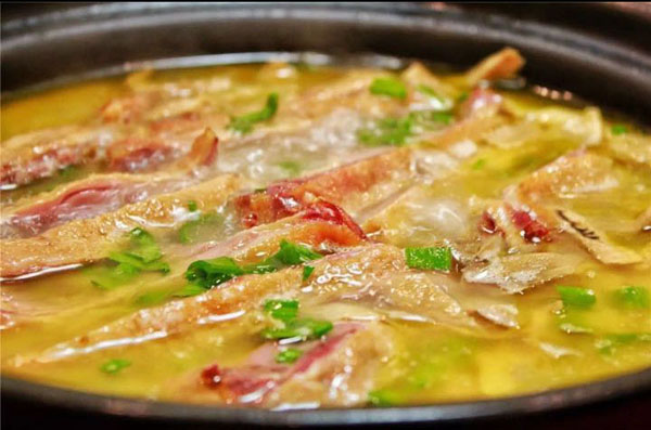 橫林有個地兒叫楊歧村,有句老話叫“上不靠橫林,下不靠洛社”,說的就是那里。 楊歧村過去幾十米就是無錫地界,今天小編推薦的土菜館「三妹農(nóng)家小吃」就在那里。 當小編一路七拐八拐,中午11點半到達那里時,門面雖然很簡陋,但店門口已然停了好多輛車。剛進入店門,就發(fā)現(xiàn)這家店人氣好旺,十幾桌基本都坐滿了。(所以說,人不可貌相,餐館也是如此) "三妹,三妹。⒌昀锟腿私袉韭暡唤^于耳,原來老板娘叫楊三妹啊。你們忙,我們先隨便看看。 過大廳到后堂就是冷菜間,里面有白切草雞、鹵豬干、拌馬蘭等十幾種土菜,尤其那草雞濃郁的香味,讓小編肚子叫得咕咕響。 往前是活貨區(qū),各種鮮魚活蝦一格一格區(qū)分養(yǎng)著,再里面是開放式廚房,每個客人都可以看到,選用的放心食材和調(diào)料。  吃貨老板娘,楊三妹,三妹,從小到大一直有個嗜好,就是愛美味,不光喜歡吃,還喜歡鉆研做。2010年,「三妹小吃」開張,因為獨具特色,在楊歧這個小村一炮而紅。要說楊三妹最拿手的菜是什么,當然是酒糟扣肉。 糟本來就是一種做米酒留下來后,用來吊燒酒的。但是我們常州人很聰明,把糟和肉放在一起,做成一道美味菜,叫酒糟扣肉。 楊三妹的酒糟扣肉之所以有名,得益于母親的悉心傳授。記憶里小辰光,她母親做的扣肉總比別人家的香!冈恪,釀完酒后留下的糟,會與炒熟的新糯米,拌和在一起,陳一年。「肉」,選擇本地養(yǎng)殖的良種豬,沒有臊味。 長大后,她把記憶里的美味延續(xù)了下來。精益求精的她,對扣肉的制作過程要求很嚴格。別人家制作都是把肉直接切大塊,排碗,熬槽,蒸爛。三妹說,這樣烹制,肉汁的鮮美會流失很多,口感減分不少。她的做法是精選新鮮豬五花,整大塊清蒸,保留肉汁的鮮美,之后再切塊紅燒,排碗,熬糟,澆蓋,再蒸。 三妹酒糟扣肉,出鍋后,色澤紅潤,味道鮮美。既有酒的香味,又有肉的鮮美,而且經(jīng)過蒸煮后,油脂都出來了,爽口不油膩。
