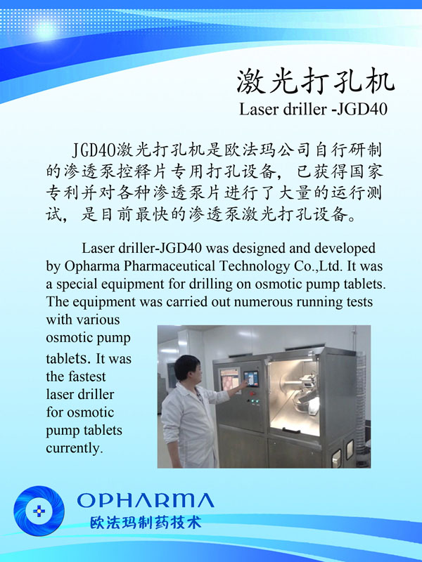 常州歐法瑪制藥技術(shù)有限公司位于長江三角洲黃金腹地——常州。地理位置優(yōu)越、交通便捷,由鐵路、公路、水路、民航形成了一張立體交叉的交通網(wǎng)絡(luò)。 公司創(chuàng)建于2013年,是一家集研發(fā)、生產(chǎn)和銷售為一體,專業(yè)從事高速激光打孔機、滲透泵制劑研發(fā)、生產(chǎn)和銷售。目前公司擁有員工20人,科技研發(fā)和技術(shù)人員占員工總數(shù)80%以上,其中本科以上學(xué)歷占80%以上。 公司始建以來,以前瞻的科學(xué)規(guī)劃,通過自主研發(fā),解決了高速激光打孔機諸多的世界難題,使之達到40片/秒以上且精確打孔的國際領(lǐng)先水平;同時開發(fā)廢片自動識別、剔除功能,以滿足客戶的實際所需。公司與瑞士等國家研究機構(gòu)的科技合作,以高速激光打孔機為基礎(chǔ),建設(shè)了滲透泵制劑研發(fā)和中試生產(chǎn)車間,開發(fā)了多種藥物的滲透泵制劑,形成了從關(guān)鍵設(shè)備研制,新制劑開發(fā)、工藝配套,到批量生產(chǎn)測試的滲透泵制劑開發(fā)全過程技術(shù)團隊和研究設(shè)施。公司瞄準(zhǔn)現(xiàn)代新型釋藥系統(tǒng),吸收國內(nèi)外高端人才,努力開拓控緩釋技術(shù)、靶向給藥技術(shù)及智能給藥技術(shù)。 2013年公司被評為黑馬大賽“創(chuàng)業(yè)組50強”、“領(lǐng)軍人才創(chuàng)業(yè)重點企業(yè)”;2014公司通過了IS09001-2008質(zhì)量管理體系認證、CE認證、江蘇省質(zhì)量信得過企業(yè)。