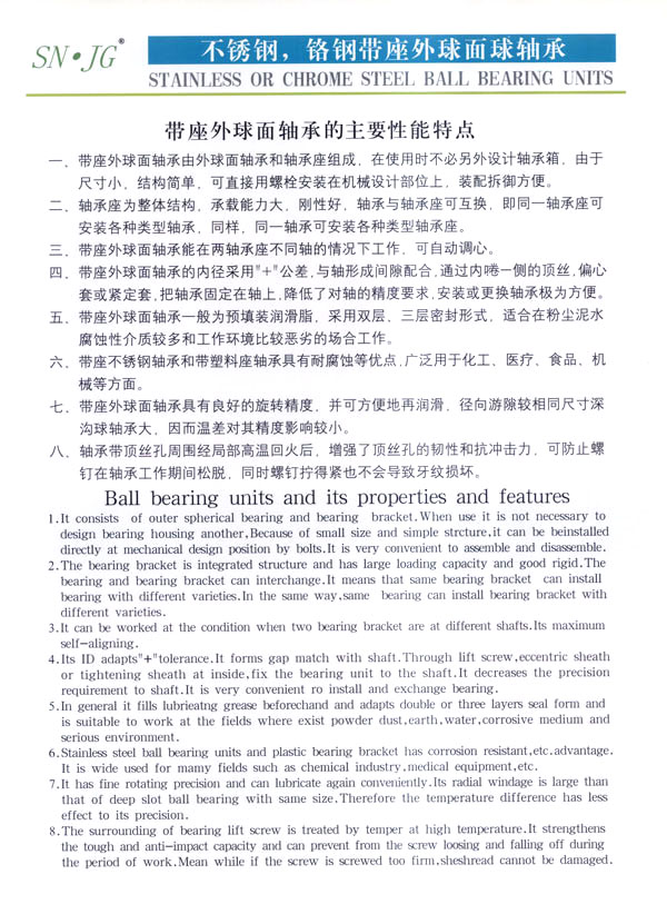 本公司技術力量雄厚,工藝裝備先進,檢測手段完備,產(chǎn)品質(zhì)量穩(wěn)定,使用性能各項指標都達到國際先進水平,產(chǎn)品主要銷往美國、法國、德國、日本、意大利、澳大利亞、韓國、加拿大、及東南亞等國家和地區(qū)。本公司的“SN”商標鋼球及帶座外球面軸承已贏得國內(nèi)外廣大用戶的信賴。
