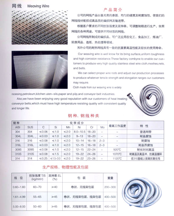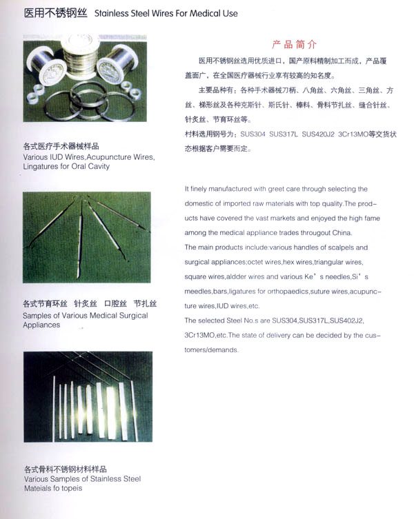 公司專業(yè)生產(chǎn)各種不銹鋼線材,年生產(chǎn)能力25000噸,產(chǎn)品已廣泛用于醫(yī)療、交通化工、彈簧、陶瓷模具、鋼球、五金件、標(biāo)準(zhǔn)件、精密軸制造等各領(lǐng)域。