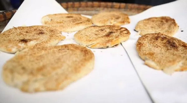 常州大麻糕已經(jīng)有150多年的歷史,常武各地的麻糕師傅、麻糕店數(shù)不勝數(shù),但今天小編要帶大家去的是一家隱藏在背街小巷里,至今仍保持著傳統(tǒng)手工制法的麻糕店。 沈正昌麻糕店位于遙觀鎮(zhèn)東街、國寧寺旁,雖然店門口連個招牌都沒有,卻不妨礙四面八方的食客慕名而來,大伙看中的正是這些純手工制作,原汁原味的大麻糕。如今的店主沈國平已經(jīng)是沈家第四代做麻糕的傳人了。 秉承著爺爺那輩傳下來的手藝,他們制作的麻糕塊大實誠,用料講究,口感酥軟,深受四周鄉(xiāng)鄰的歡迎!拔覀冞是老法,酥是生板油身擦的,餡里也是生板油摻糖,是真的綠色產(chǎn)品,沒有添加劑,沒有防腐劑,也不用甜蜜素,都是真家伙。” 每天凌晨一兩點鐘,沈國平就要去采買當(dāng)天最新鮮的豬板油,回來清理干凈,和上面粉攪拌均勻,制成面團。麻糕的制作主要由沈國平妻子和兩個姊妹來完成。揉面、搓胚子、配油酥,按餡心、搟均勻,整個過程行云流水,連貫無比。 當(dāng)爐火燒得正旺,溫度能高達近300度,沈國平就上場了,赤手空拳,一撈一貼,一秒鐘的功夫,就把麻糕貼到了桶壁上。不過幾分鐘的功夫,麻糕就出爐了。經(jīng)過炭火爐子烤出來的,比一些電烤爐烤出的更香、更脆。