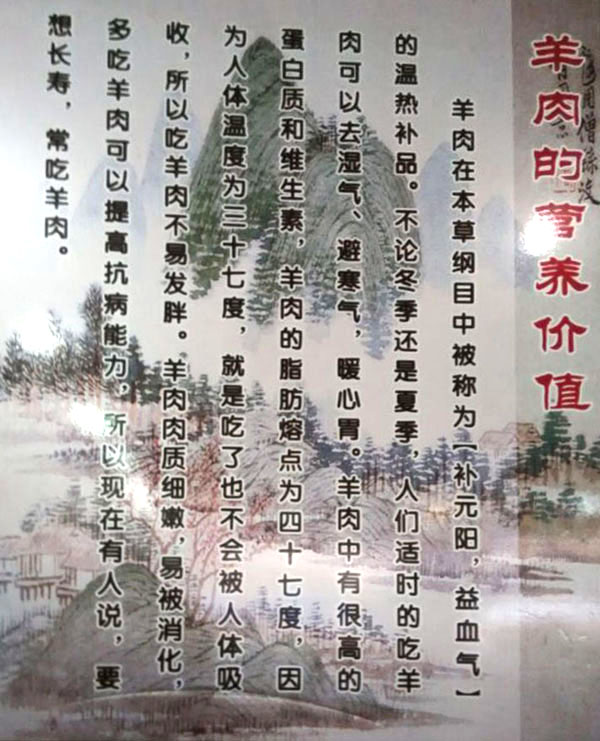 羊肉性溫熱、補氣滋陽、暖中補氣、開胃健脾、還可以去濕氣避寒冷,暖胃寒、養(yǎng)吃百草、養(yǎng)根據(jù)自身生理需要選擇草木、固羊有“百藥之庫”之稱。古人云:多吃羊肉、健康長壽。