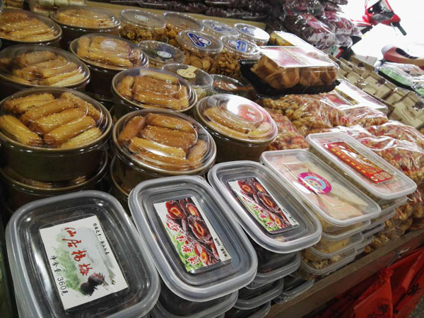 湖塘花東街上的“石頭炒貨店”是20多年的老字號(hào)了。上個(gè)世紀(jì)90年代,二十郎當(dāng)歲的“石頭”一一石愛(ài)軍從徐州來(lái)到武進(jìn),就在這條街上擺了個(gè)炒貨攤!皫灼椒矫椎男〉?cái),邊上架個(gè)大鐵鍋,炒出的瓜子、花生、蠶豆,鋪在竹篾上篩過(guò)、冷卻后就可以賣(mài)了!笔瘣(ài)軍回憶,街坊鄰里冒著冬日的嚴(yán)寒,擠在地?cái)偳皣L著剛出鍋的瓜子的場(chǎng)景,還歷歷在目。20多年過(guò)去了,鄰居們都成了最熟悉的親人,從年輕姑娘到抱著孫子的老人,大家還是最?lèi)?ài)吃石頭炒的瓜子。而炒貨店的店面也擴(kuò)大了,并且在湖塘另開(kāi)了多家分店。 生意最好的還是花東街上的老店。不大的店面,被一袋袋瓜子、花生、蠶豆、核桃堆得滿滿的,空氣里也滿滿都是堅(jiān)果的香氣。超大瓜子唇齒留香,去皮瓜子鮮香入昧,南瓜子皮薄肉厚,還有開(kāi)心果、手剝松子、小油果、核桃、碧根果、小黃豆,以及炒米糕、蛋卷、麻松條、紫薯干、地瓜干、山芋片、鍋巴、芝麻糖、山楂、麻花、葡萄干….這么多美昧都是老板親手制作。愛(ài)吃點(diǎn)什么,就用一 長(zhǎng)柄勺鏟點(diǎn)兒什么,最質(zhì)樸簡(jiǎn)單的包裝袋里,裝著的是屬于這條老街居民記憶里的味道,穿過(guò)幾十年的時(shí)光,仍然鮮活生動(dòng)地銘刻在每一個(gè)人的里。 “少東家”石榮沖就是在這個(gè)老店、這條老街長(zhǎng)大的。他說(shuō)目前自己炒瓜子的技藝還沒(méi)到火候,還在跟著父親學(xué)習(xí)的階段!碧暨x原料、炒制工序,每一步都有學(xué)問(wèn)在里頭!蹦玫陜(nèi)的銷(xiāo)售冠軍“內(nèi)蒙大瓜子”來(lái)說(shuō),這種來(lái)自內(nèi)蒙、經(jīng)過(guò)充足日照的葵花子每顆長(zhǎng)度近2厘米,個(gè)頭特別大,也十分飽滿。拈一顆大瓜子,就連嗑起來(lái)的聲音也分外清脆。外皮很容易與內(nèi)仁剝離,碩大的瓜子仁口感十分香脆,與別家作料用得很足、吃起來(lái)特別鮮咸的瓜子不同,這種大瓜子更注重烘托原昧,淡淡的咸昧在舌尖掠過(guò),剩余的都是屬于瓜子的天然香甜。