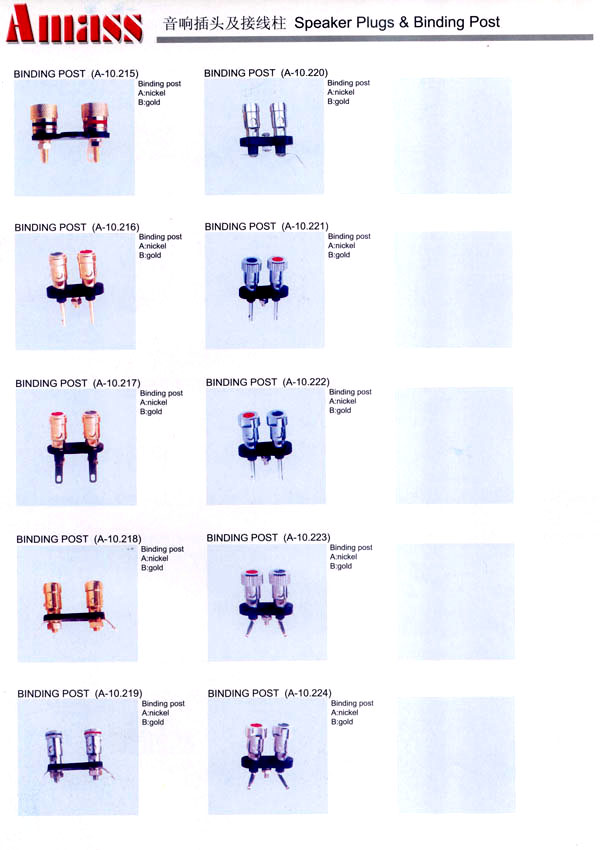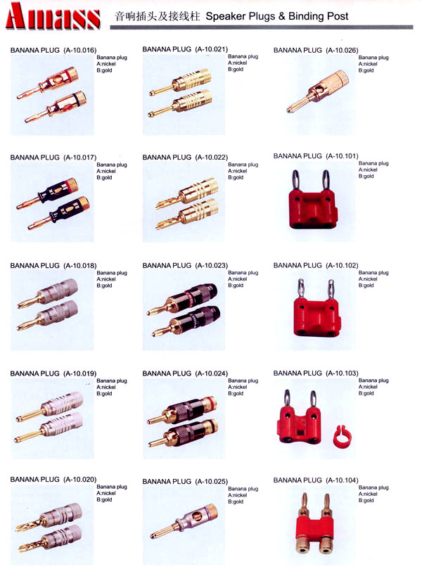本公司專業(yè)生產(chǎn)各類香蕉插頭,香蕉插座,接線柱,電瓶夾,鱷魚夾,測(cè)試導(dǎo)線,測(cè)試筆等。產(chǎn)品分2mm/2.5mm/3mm/3.5mm/4mm五大系列,百余種款式, 各種香蕉插廣泛用于儀器、儀表、電力測(cè)試、教學(xué)、玩具,視聽設(shè)備、醫(yī)療儀器,保健產(chǎn)品等領(lǐng)域。公司技術(shù)力量雄厚,生產(chǎn)工藝先進(jìn),產(chǎn)品遠(yuǎn)銷港、臺(tái)、歐美,并與飛利浦等國(guó)際品牌配套。公司本著精益求精的理念,歡迎新老客戶光臨。