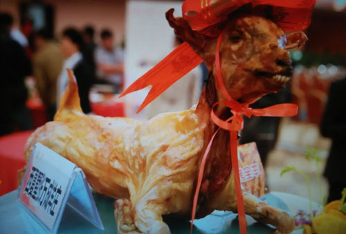 張萬(wàn)成羊莊一家綜合性的公司,下設(shè)酒店,羊產(chǎn)品加工廠(chǎng),屠宰廠(chǎng),山羊養(yǎng)殖場(chǎng)。 酒店位于常州西夏墅浦河村,酒店羊宴規(guī)模占地30畝,酒店主要經(jīng)營(yíng)特色全羊宴。 一個(gè)祖?zhèn)鞯臍⒀虼髴?hù),傳到張萬(wàn)成,已是第六代了。張家的羊肉,素來(lái)以肉質(zhì)鮮美著稱(chēng),張萬(wàn)成羊莊的主人張建龍是第六代傳人,張家的羊肉素來(lái)以肉質(zhì)鮮美著稱(chēng),從常州新北區(qū)沿黃河西路往機(jī)場(chǎng)方向直行至羅溪右轉(zhuǎn),穿過(guò)滬寧高速高架橋后不遠(yuǎn)處左拐沿翠屏湖路直走便能看到張萬(wàn)成羊莊,酒店上下共有三層,2000多平方米經(jīng)營(yíng)面積,能同時(shí)接待近30桌客人的規(guī)模。有自己的羊圈和屠宰場(chǎng),每天殺20多只,菜式近100道。光是原料,就從原來(lái)羊身上的幾個(gè)主要部位,增加到除了羊牙齒以外的一只整羊全部可以入菜。烹制方式,更是在本土單一的燒、炒、煮基礎(chǔ)上,借鑒了東北、廣東、四川等地的烹羊特色,增加了蒸、涮、烤、煎、炸等多種方式。 注重原汁原味的冷菜 白切羊肉:精選羊頸部的活肉精制而成,肥瘦適中,絲毫沒(méi)有一般羊肉的膻味,沾少許張萬(wàn)成羊莊秘制的醬料,口感非常好。 美味羊舌:張家的羊舌感覺(jué)是用特殊的醬料腌制過(guò)的,咸中略有甜味,口感鮮嫩卻肥而不膩,味道很香。 除了白切羊肉和羊舌以外還有許多冷菜品種,如羊肚、羊心、羊耳朵等。。 火候控制精準(zhǔn)的炒菜 炒羊肝:地道的農(nóng)家風(fēng)味,與大蒜葉同炒,蒜香濃郁,羊肝鮮嫩,這羊肝可是火候菜,羊肝鮮嫩與否不但取決于廚師對(duì)火候的掌握,還在于上桌放置時(shí)間的長(zhǎng)短,所以羊肝上桌后要盡快食用,看羊肝是否鮮嫩,只需用筷子挑起并輕輕抖動(dòng),有彈性者為佳。 美味羊?qū)殻阂跃曼S、鮑味菇爆炒的羊?qū),說(shuō)是滋補(bǔ)壯陽(yáng)的一道金貴菜,配料講究的燒菜系列 宮廷燴羊肚:較為金貴的菜品,配菜貴于主料,是以名貴的素鮑和新鮮的筍絲與羊肚同煮,口感濃郁,營(yíng)養(yǎng)豐富。 海參白燒羊肉:將取自7個(gè)月大羔羊身上的帶皮腿肉與海參一同煨煮,菜肴美容滋補(bǔ),兩種鮮味互相補(bǔ)益達(dá)到完美交融狀態(tài),口感甚佳。 魚(yú)羊鮮:新鮮的青魚(yú)配上羊肉,既有本地羊肉的肥嫩,又有魚(yú)肉的鮮香,鮮!鮮!古代人造字就是有道理!”店里可以根據(jù)客人的需要配以魚(yú)回魚(yú)、鯰魚(yú)、鱖魚(yú)等。 特色的羊宴點(diǎn)心 羊肉餛飩:羊莊老板自創(chuàng)的羊宴點(diǎn)心,看似普通的油燜跑蛋卻另有乾坤,將蛋掀開(kāi)便能看見(jiàn)藏于其中的羊肉菜餡餛飩,菜和肉都是自家新鮮的原料,很好吃。 手工搟面:不知道是因?yàn)槊媸钦嬲檬止{制還是因?yàn)榧尤肓缩r味十足的羊湯,總之味道非常好,面勁道,湯也鮮美! 張萬(wàn)成羊莊的羊湯也是遠(yuǎn)近聞名,因?yàn)槭亲鎮(zhèn)鞯氖炙,做出?lái)的羊湯不腥不膻,香醇不膩,味道十分鮮美,加入粉絲或者面條更是難得的美味。